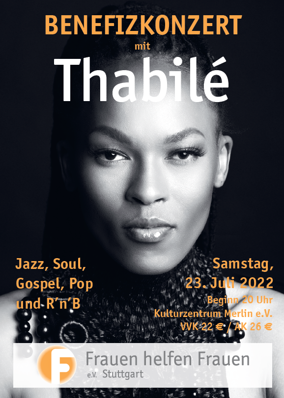 Am Samstag, den 23. Juli 2022 gab Thabilé im Kulturzentrum Merlin ein außergewöhnliches Benefizkonzert zugunsten von Frauen helfen Frauen e.V. Stuttgart und begeisterte das Publikum ganz und gar. Hier finden Sie weitere Infos zu dem bezaubernden Abend.