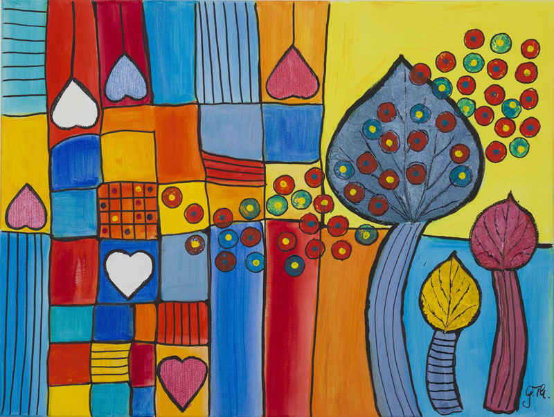 Wenn Sie auf ein einzelnes Bild klicken, erscheint eine Großansicht mit dem Namen der Künstler*innen sowie dem Titel des Werks. Mittels der Pfeile am rechten oberen Bildrand können Sie sich dann auch durch die Galerie klicken.